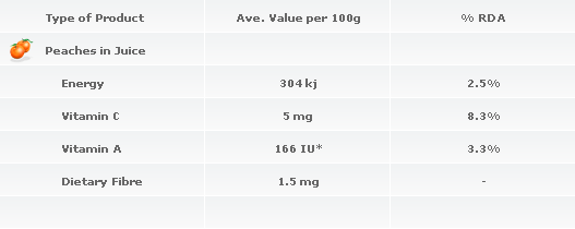 Canned fruit does still contain dietary fibre. An advantage is that persons with digestive problems often find that they can eat canned fruit without any of the discomfort associated with eating fresh fruit. Refer to the table for detailed nutritional data on some canned fruits. |